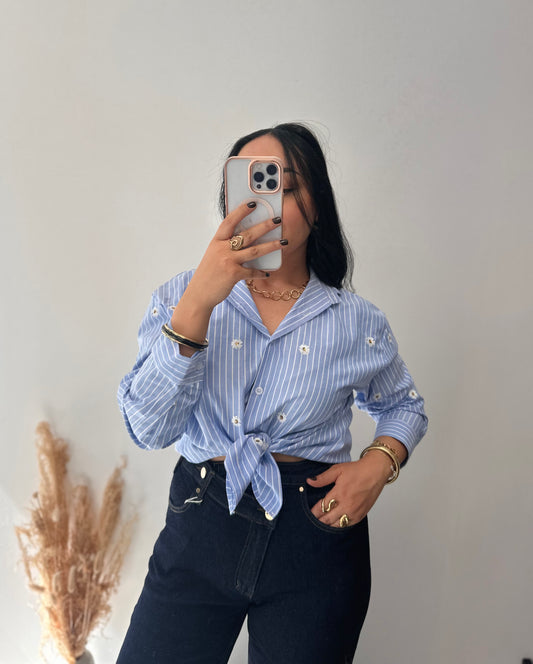 Rupture de stockChemisier beige ajouré à fleurs - EMMA
