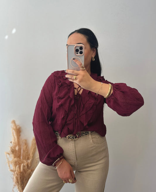 Rupture de stockChemise en voile bordeaux à lacets - AMBRE