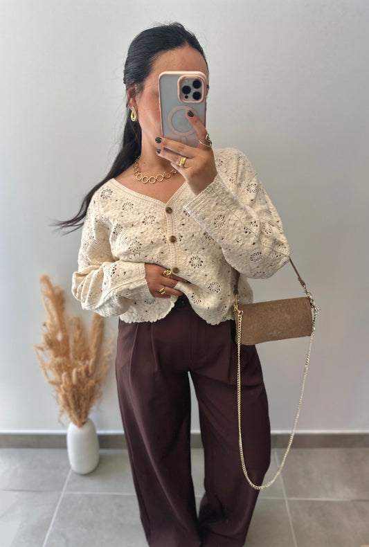 Chemisier beige ajouré à fleurs - EMMA