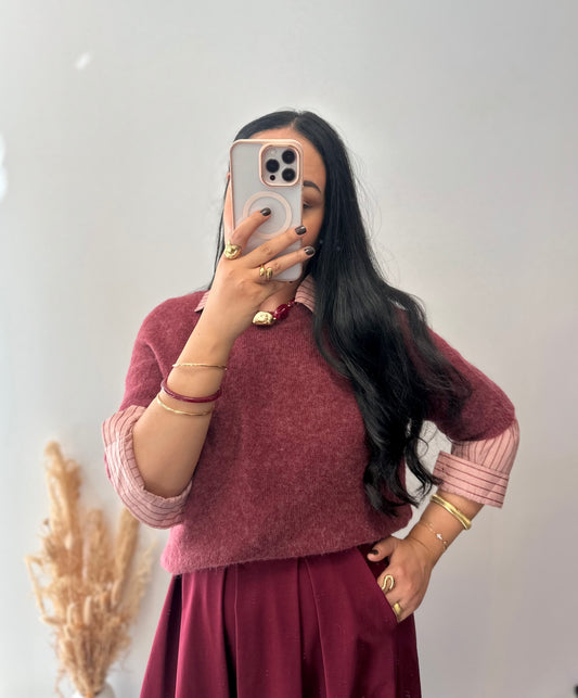 Chemise rose à rayures bordeaux pailletée - ALICE