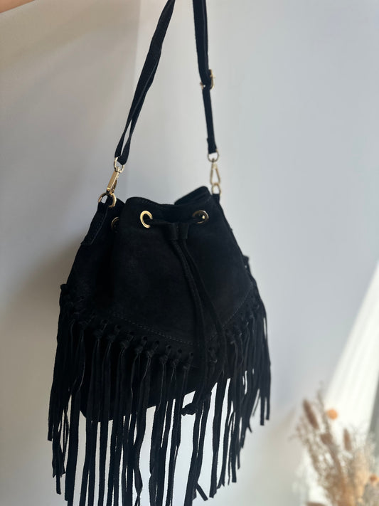Sac banane rigide en cuir suédine taupe - LOUISE
