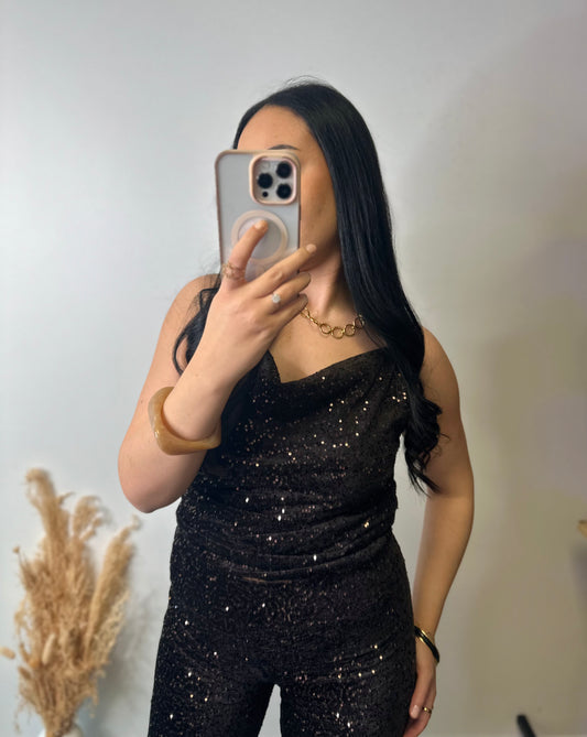 Pantalon palazzo en velours à paillettes doublé - GLAM