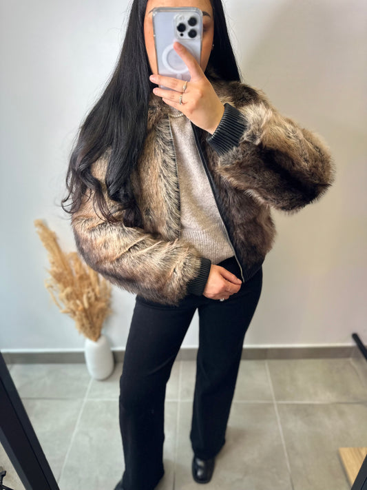 Blouson réversible rétro fourrure simili cuir - MARGAUX