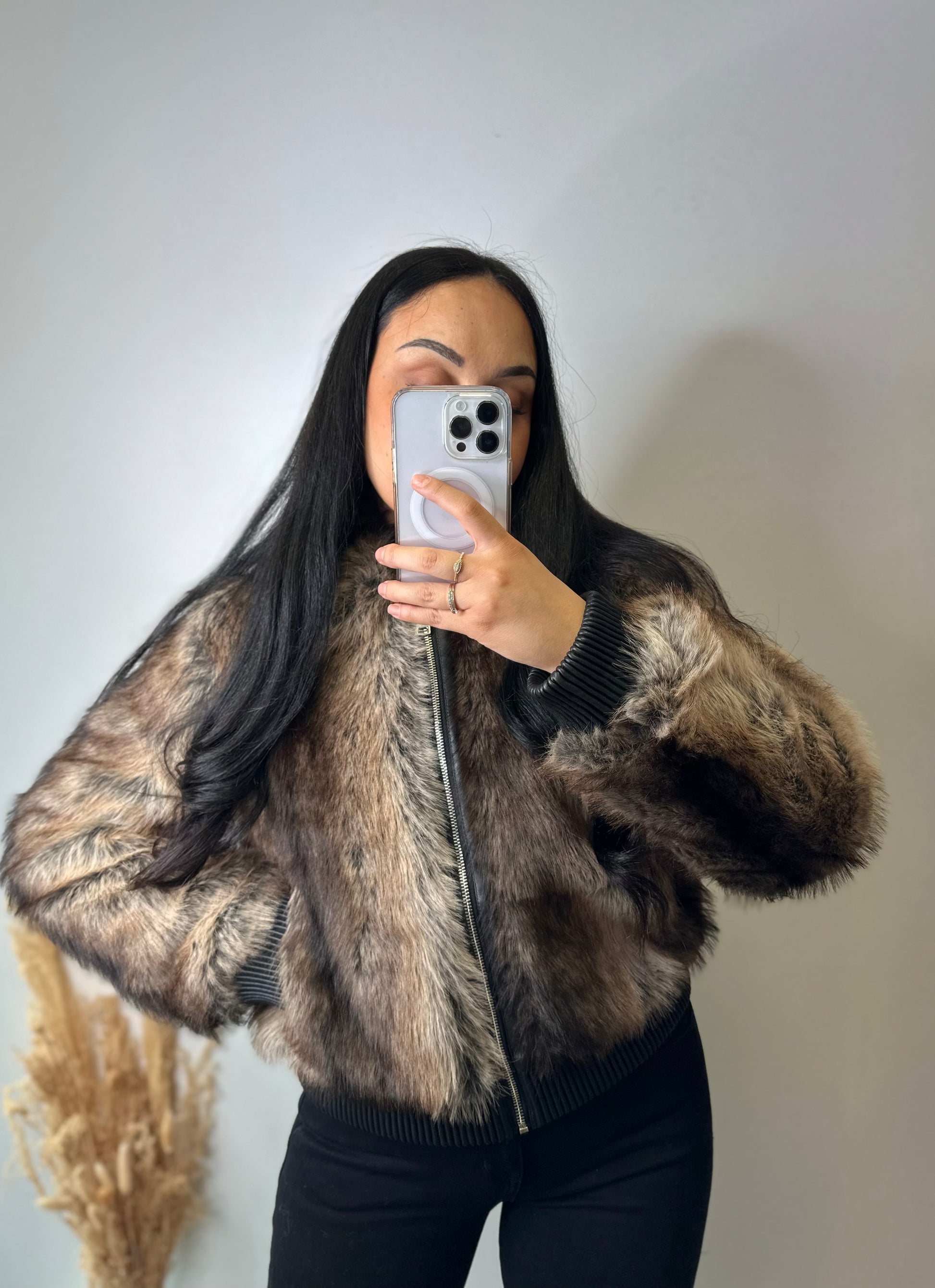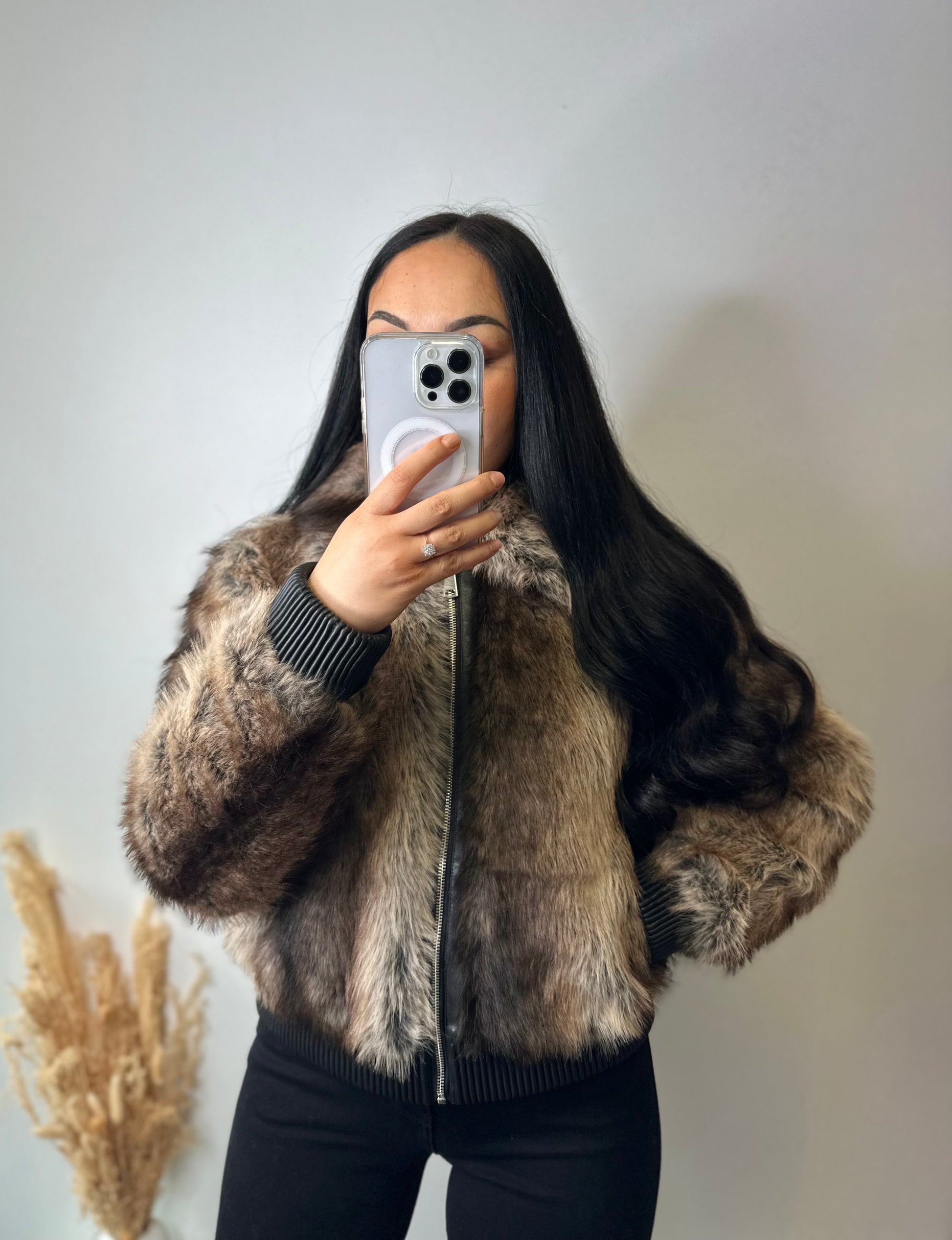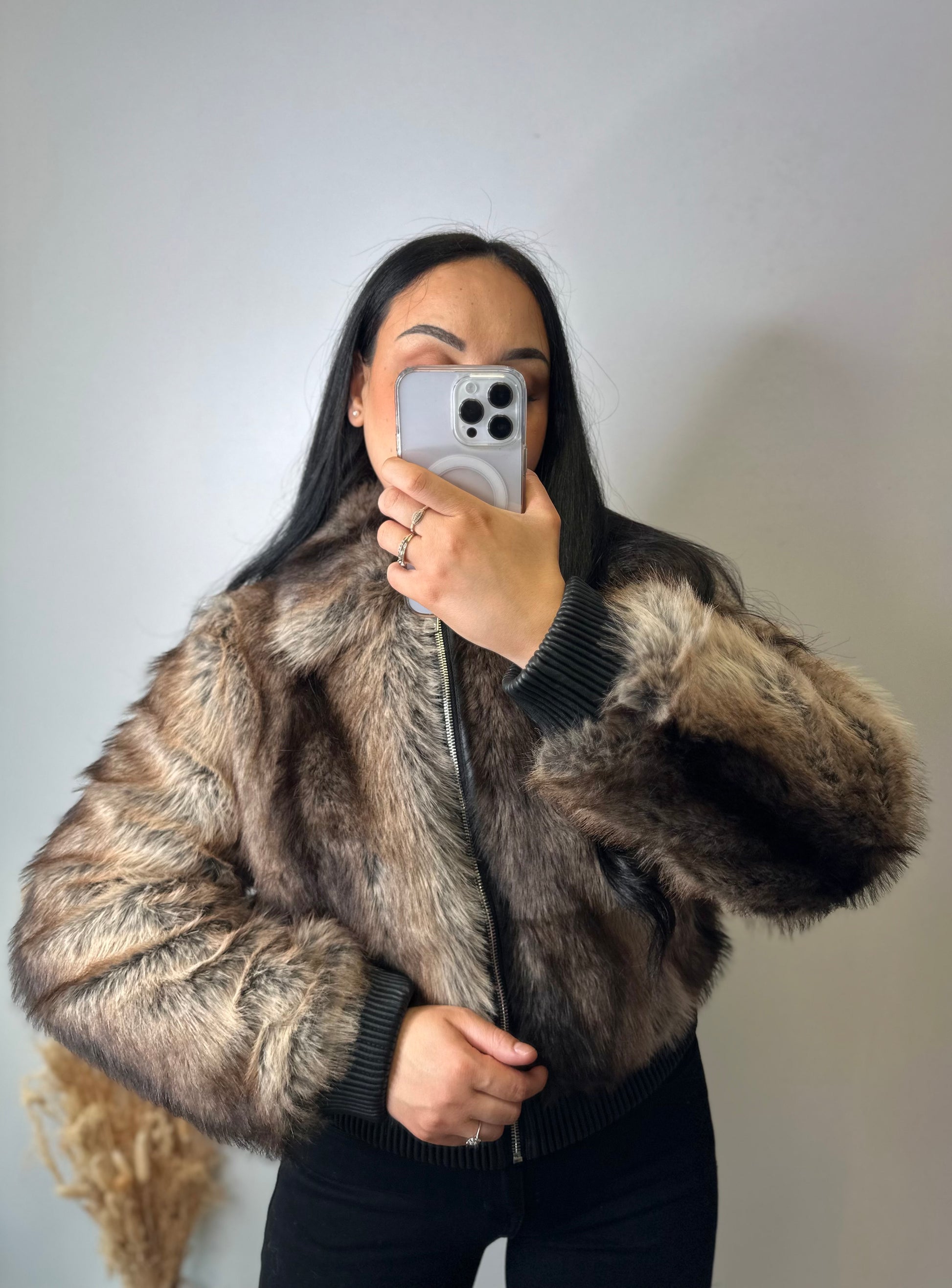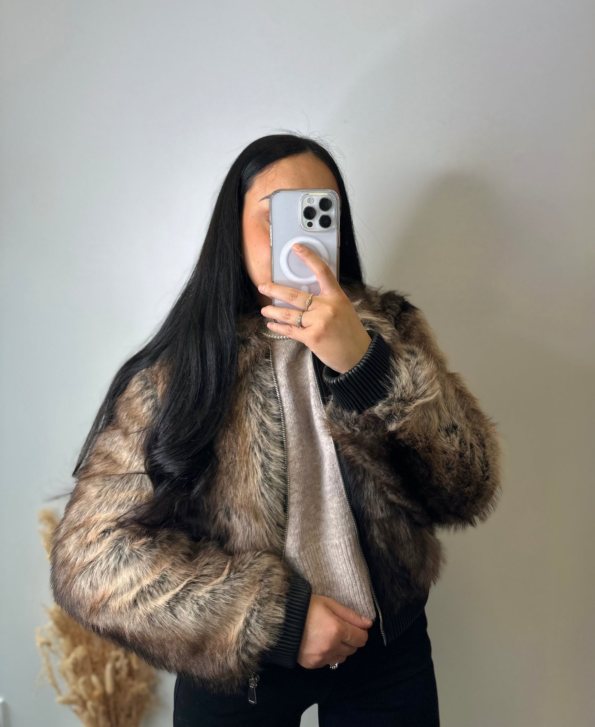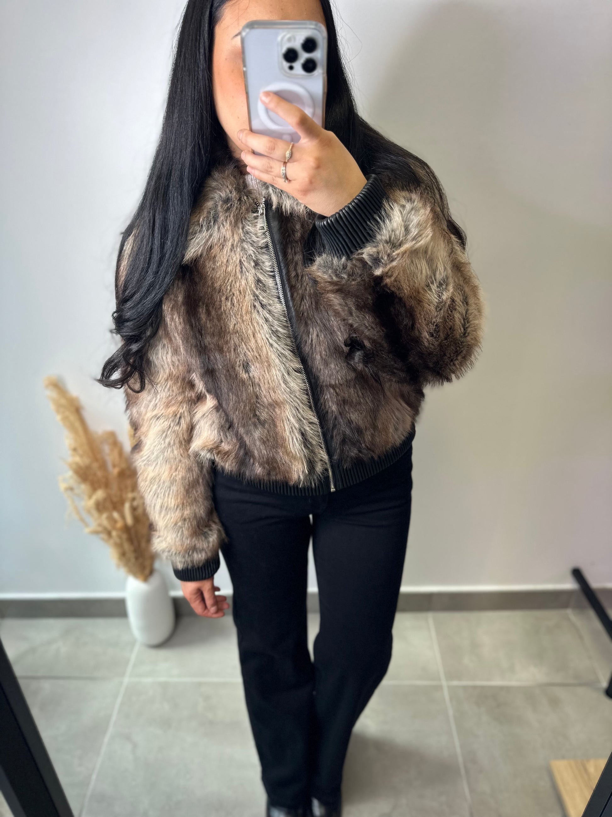 Le blouson à fourrure JUNE, de style bomber, est fabriqué en fausse fourrure colorée. Son design innovant combine esthétique moderne et confort, offrant une alternative durable à la fourrure traditionnelle tout en garantissant une chaleur optimale. Idéal pour des températures fraîches, il allie style et fonctionnalité.