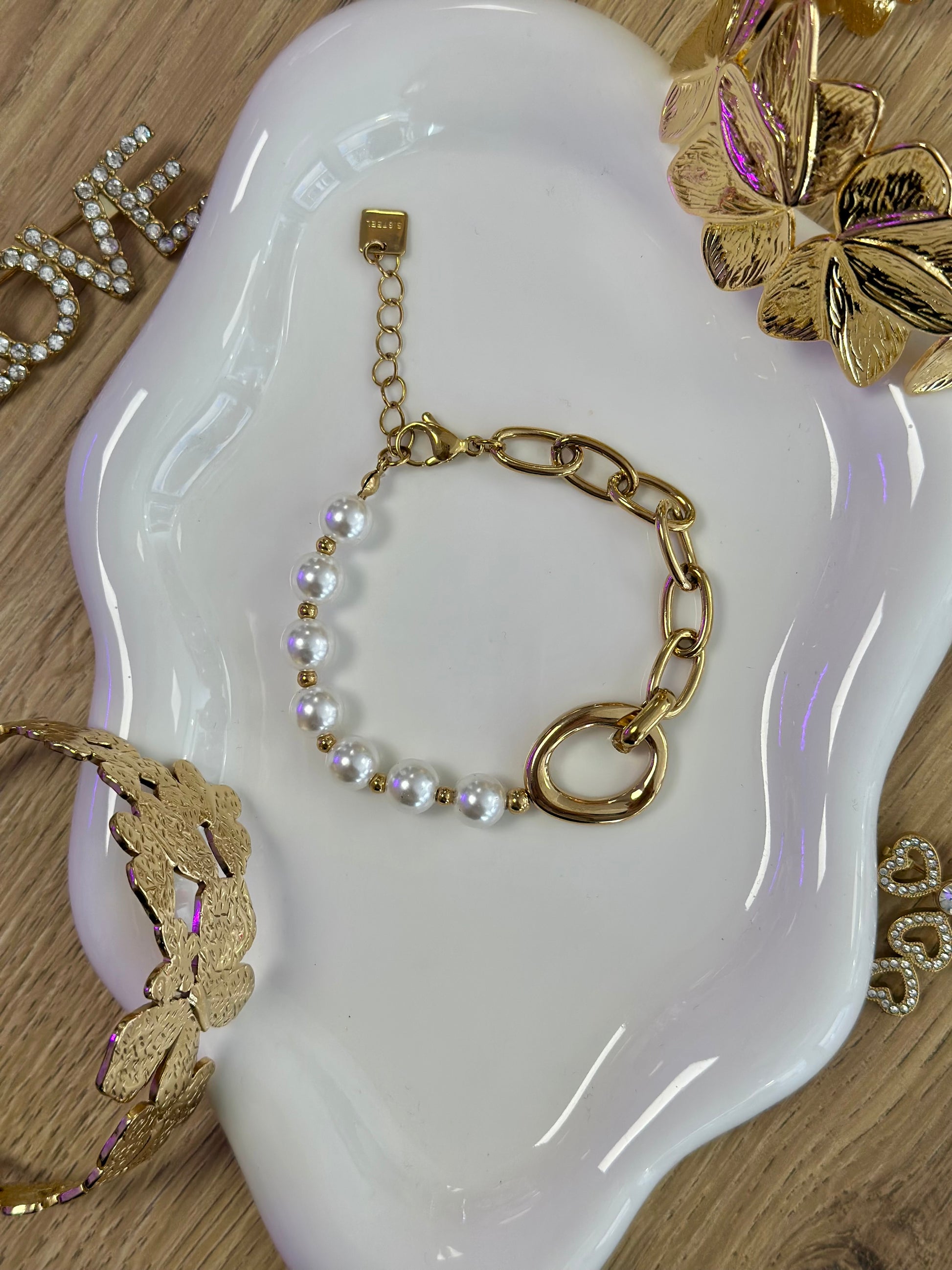 The elegant AMBRE bracelet is adorned with white and gold-tone stainless steel beads. The beads are not only strong and durable, but they also add a touch of elegance to any outfit. Treat yourself to this timeless piece of jewelry that will perfectly complement your style.