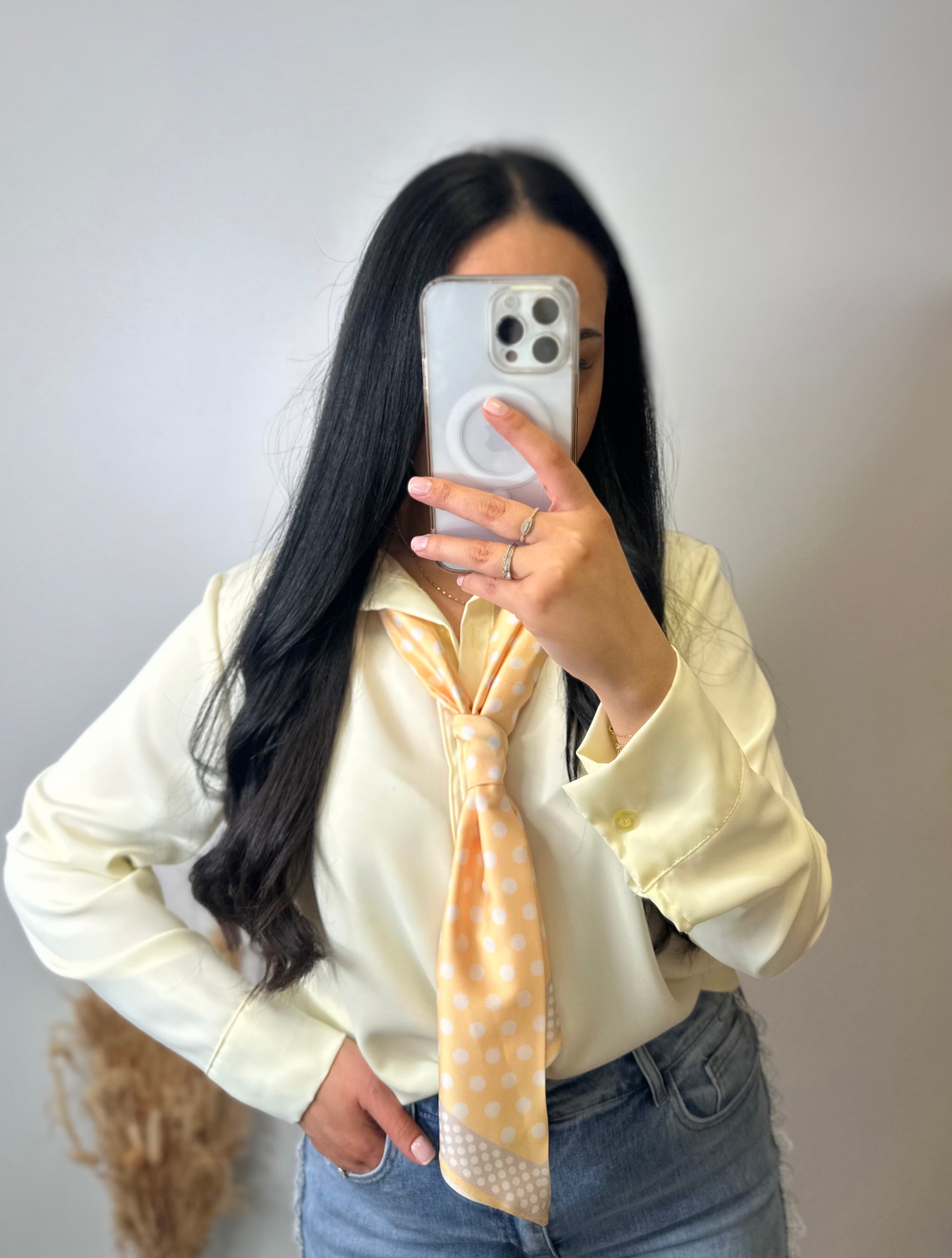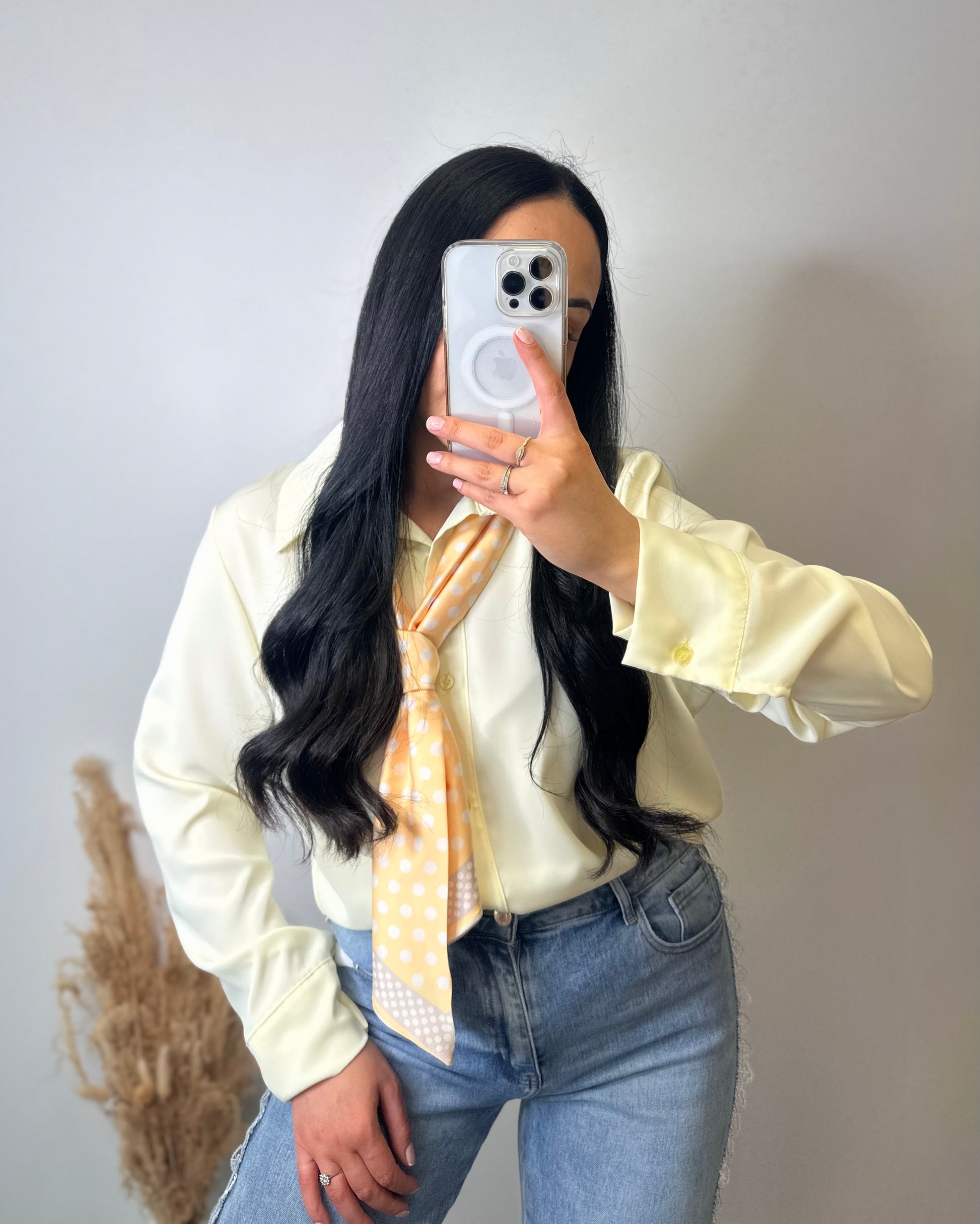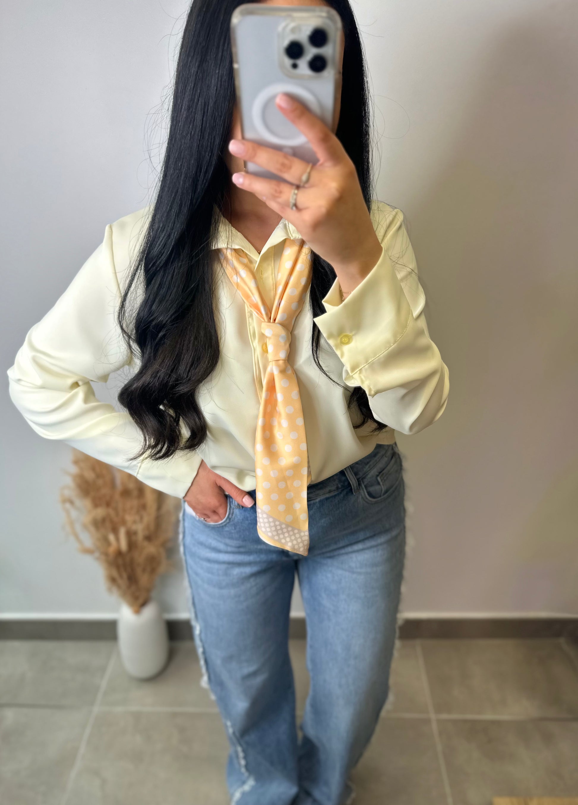 Découvrez le chemisier à cravate JADE, une pièce fluide qui allie élégance et sophistication. Le carré de soie à motifs ajoute une touche artistique, évoquant un style unique et raffiné. Portez-le pour vous sentir confiante et inspirée à chaque occasion!