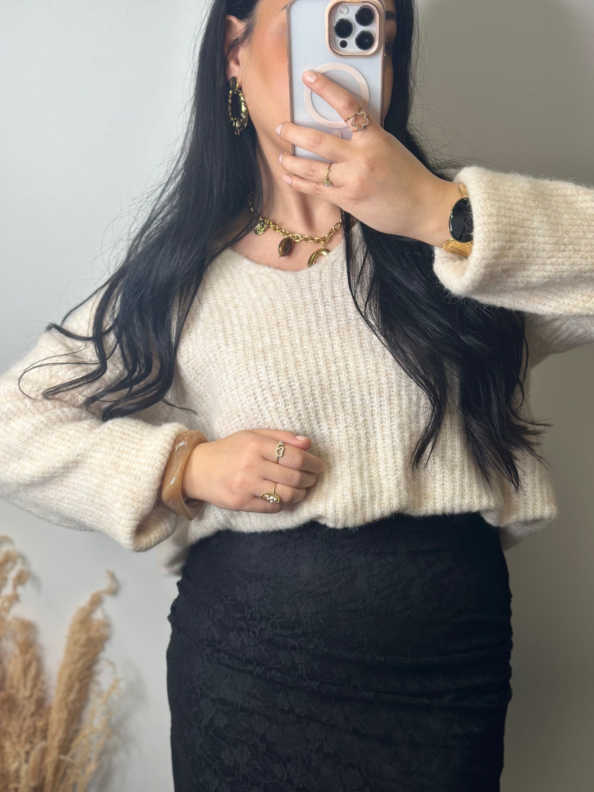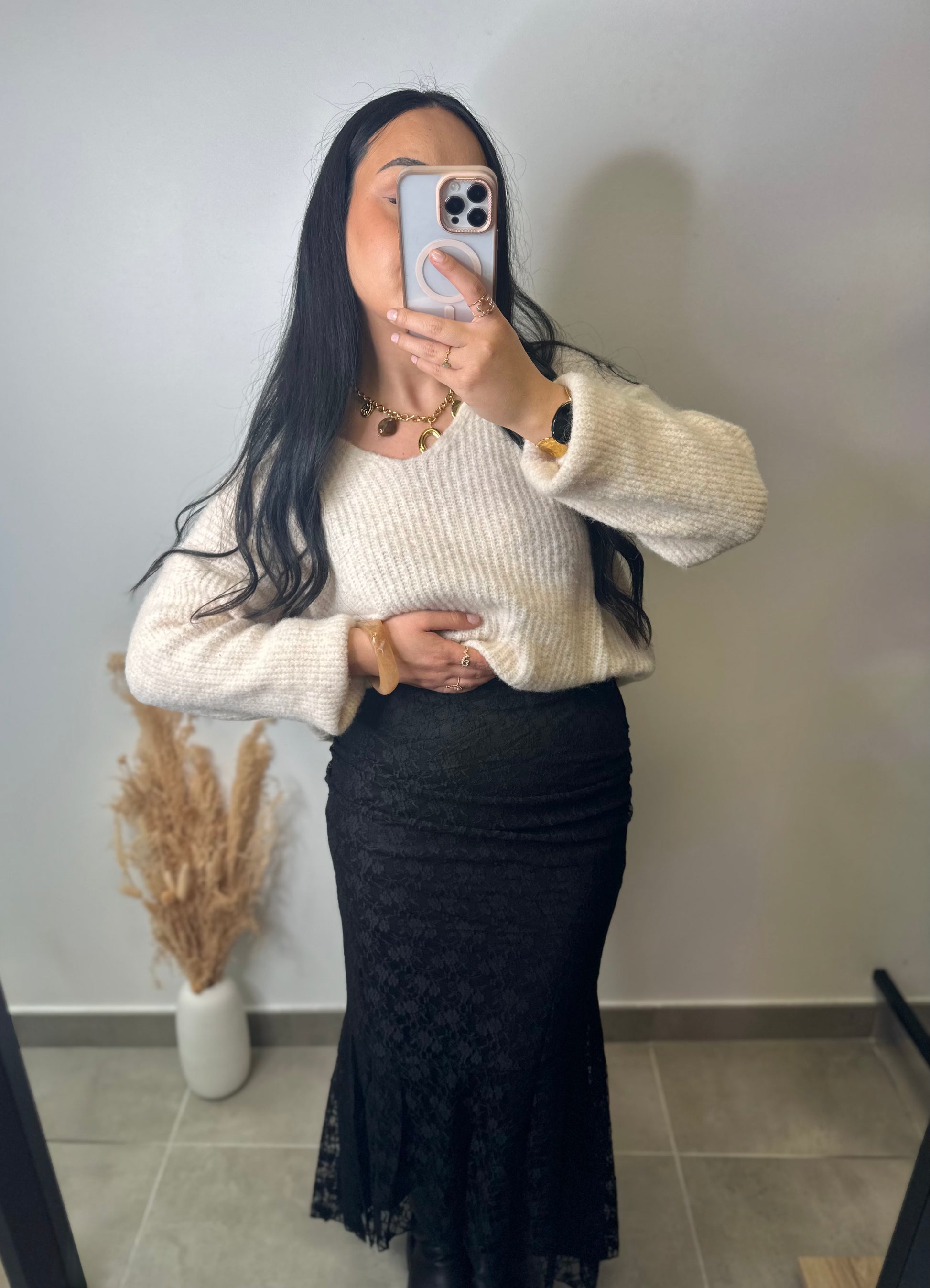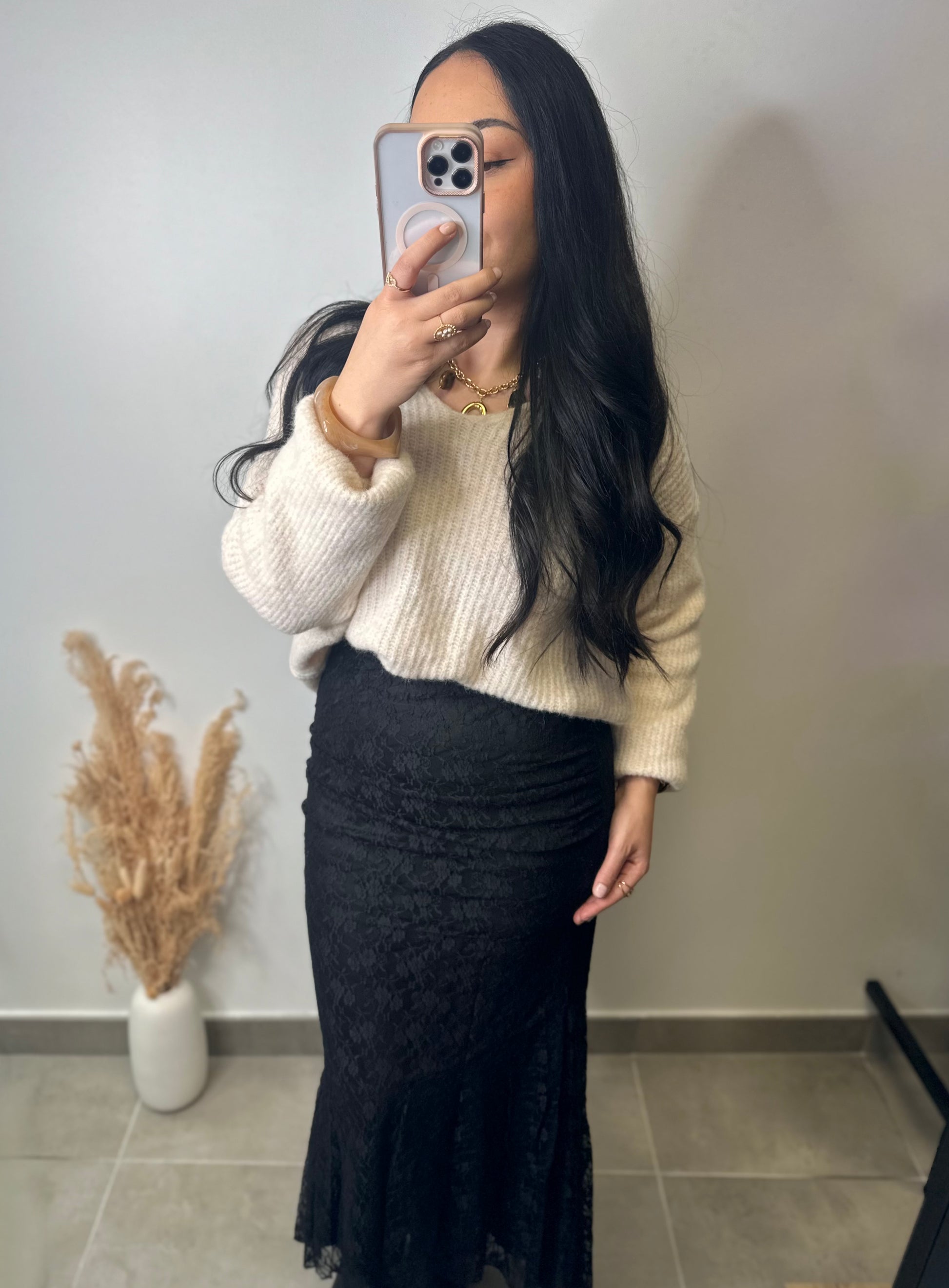 Profitez de l'élégance et du charme de la jupe dentelle sirène ANNA. Son doublé en dentelle asymétrique plus longue à l’arrière vous assure une silhouette féminine et sophistiquée. Avec sa coupe sirène, cette jupe vous mettra en valeur de façon élégante et moderne.
