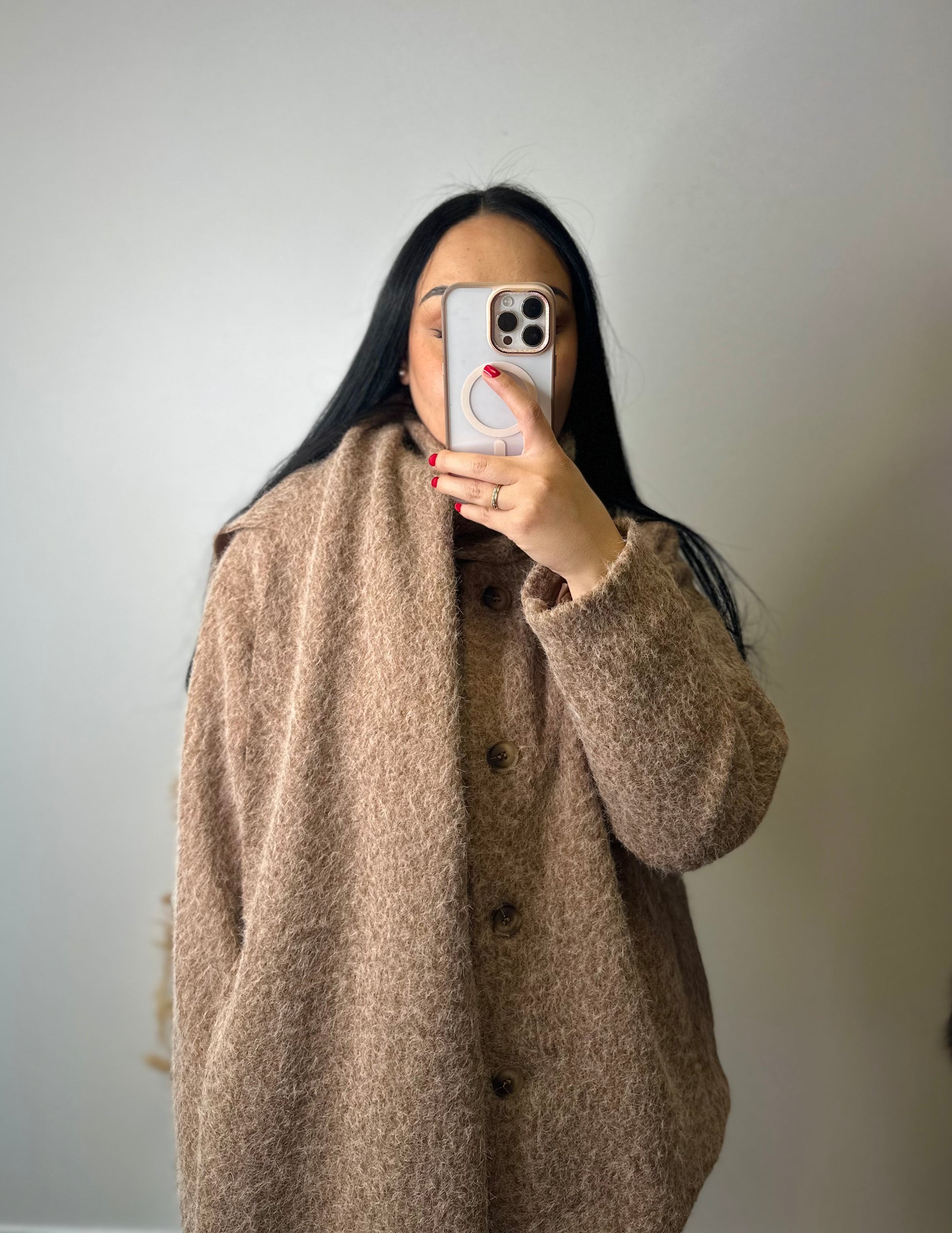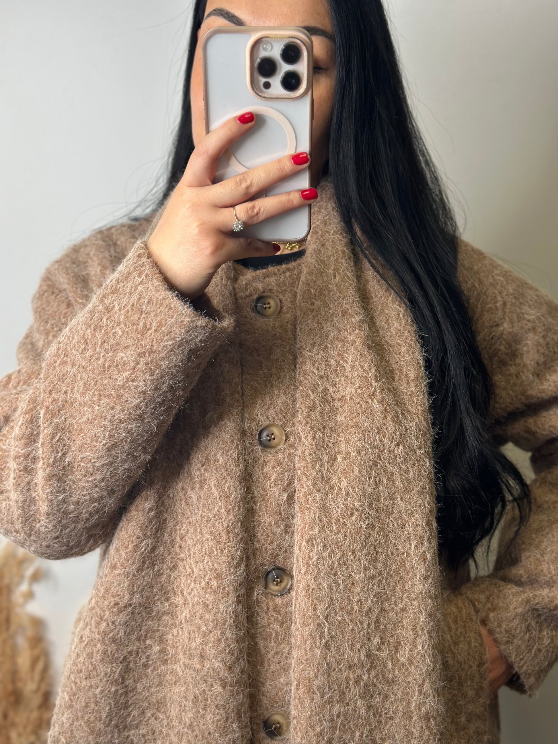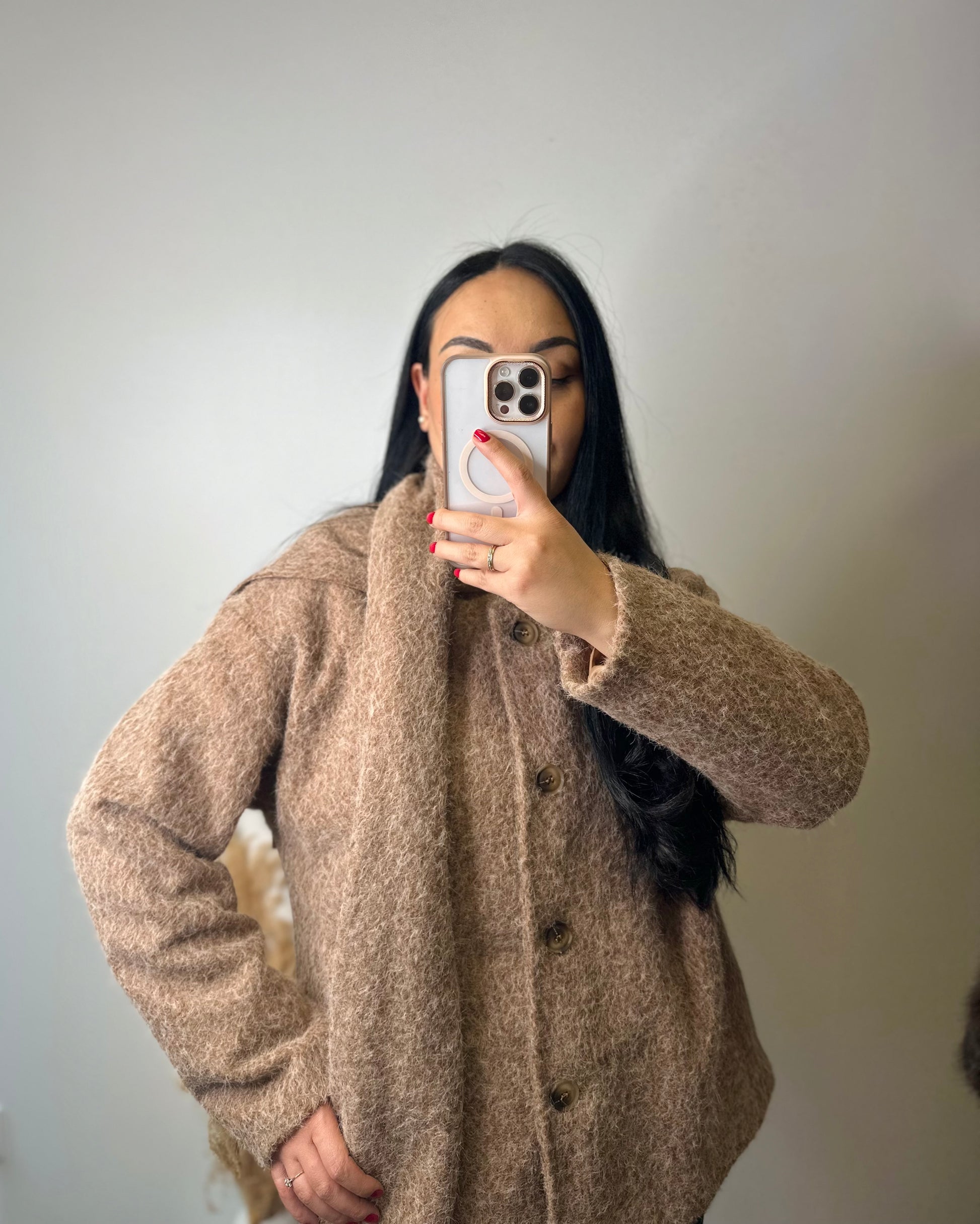Ce manteau en laine bouilli avec 30% de laine est à la fois élégant et chaud. Les boutons assurent une fermeture sécurisée tandis que l'écharpe incluse ajoute une touche d'élégance. Restez au chaud avec style grâce à ce manteau court et son écharpe assortie.