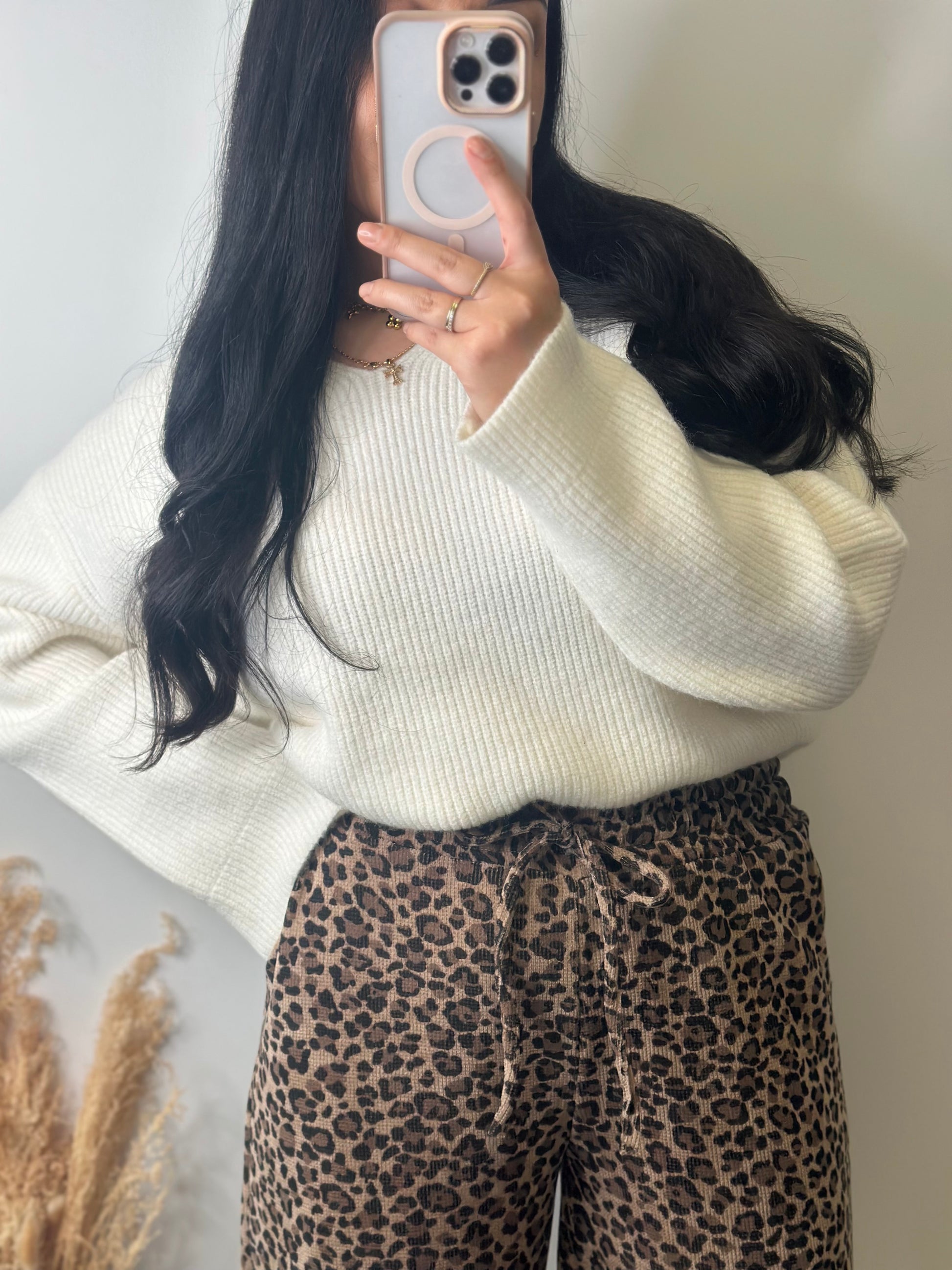 Les noeuds ajoutent une touche de féminité, tandis que le motif léopard est intemporel et tendance. Parfait pour toutes les occasions, ce pantalon vous fera vous sentir confiante et chic.