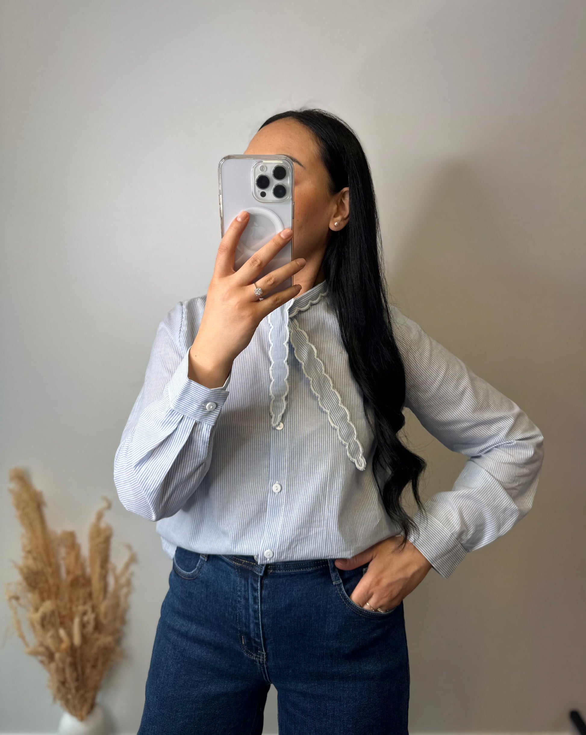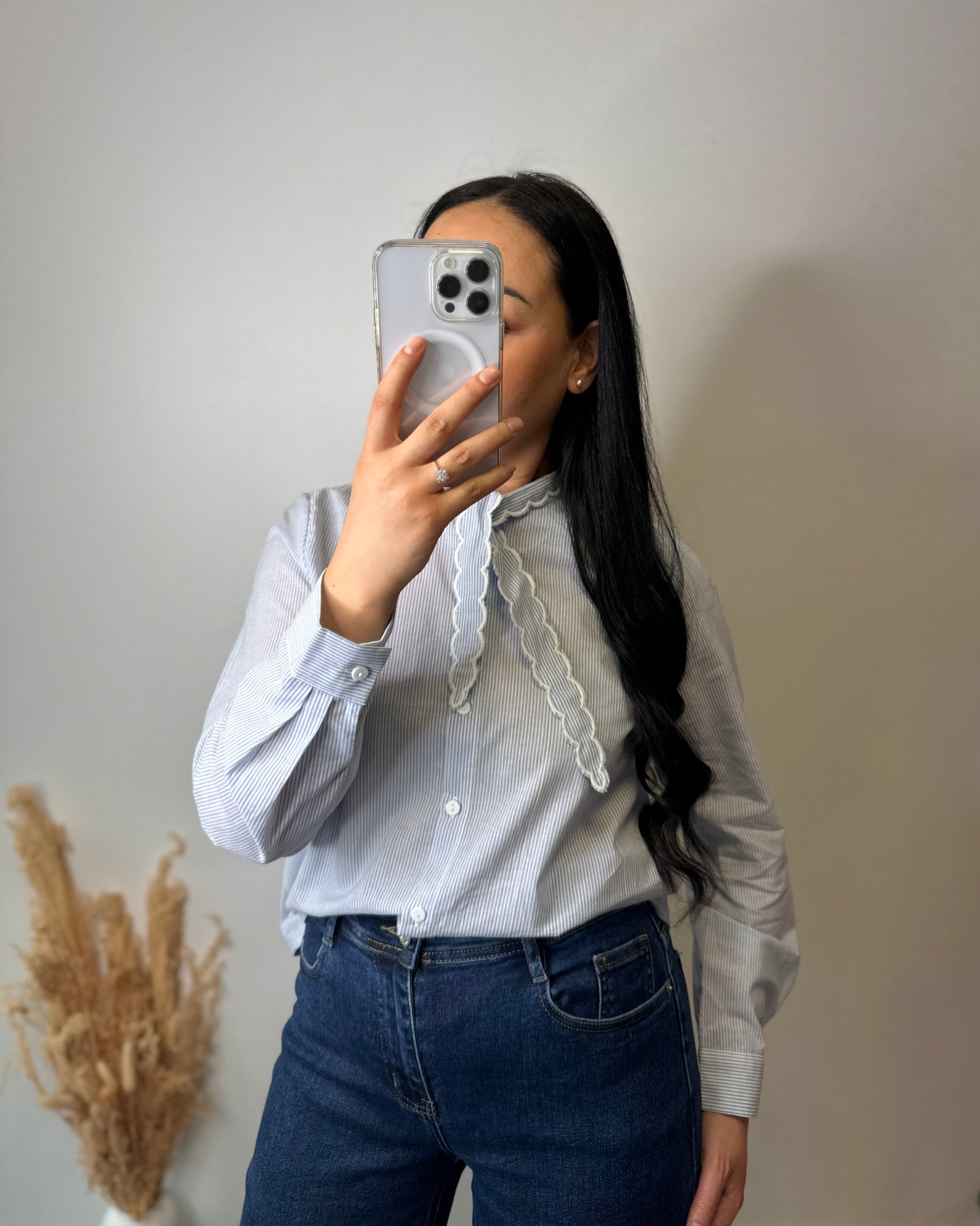 La chemise à rayures bleu et blanche CONSTANCE allie élégance et sophistication grâce à son col à nœud. Conçue avec des matériaux de qualité, elle offre un confort optimal tout en apportant une touche raffinée à votre tenue. Idéale pour des occasions formelles ou professionnelles.