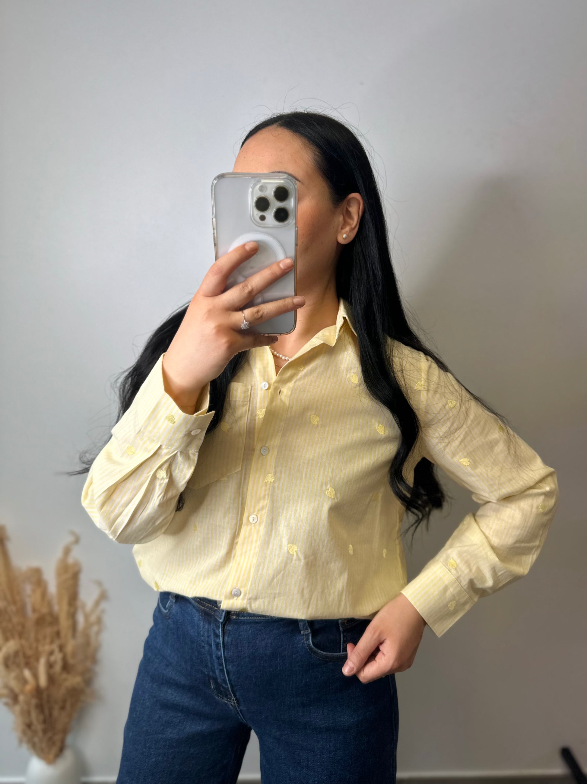 Découvrez la chemise à rayures jaune de CLOÉ, ornée de petits cœurs. Fabriquée à partir de matériaux de haute qualité, elle offre une respirabilité optimale et un confort durable. La conception rayée attire l'œil tout en conservant une élégance subtile, idéale pour diverses occasions.