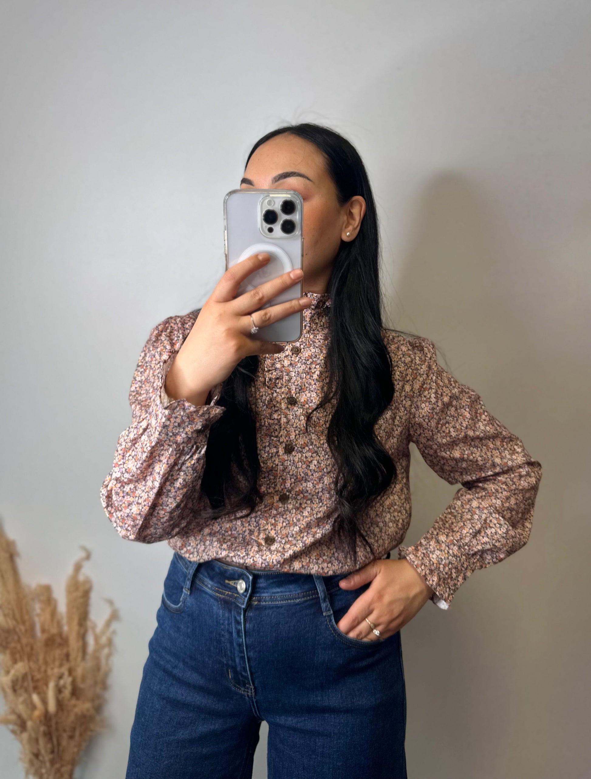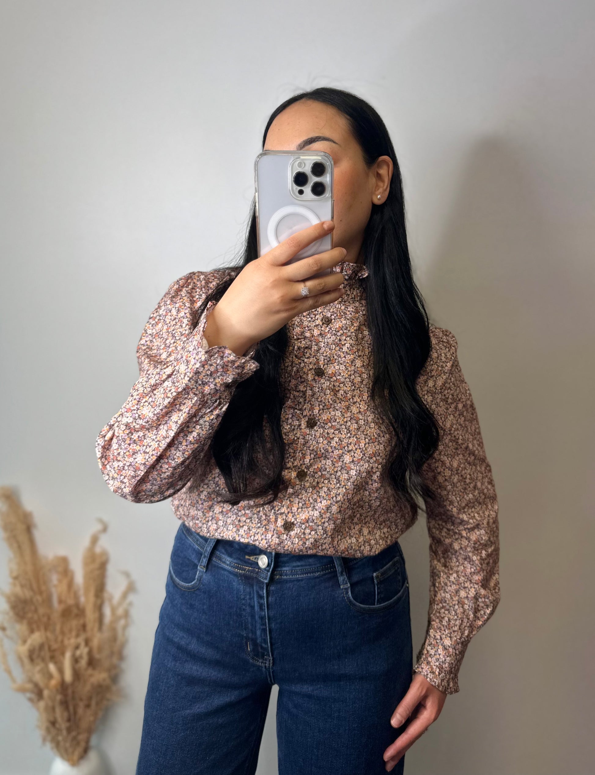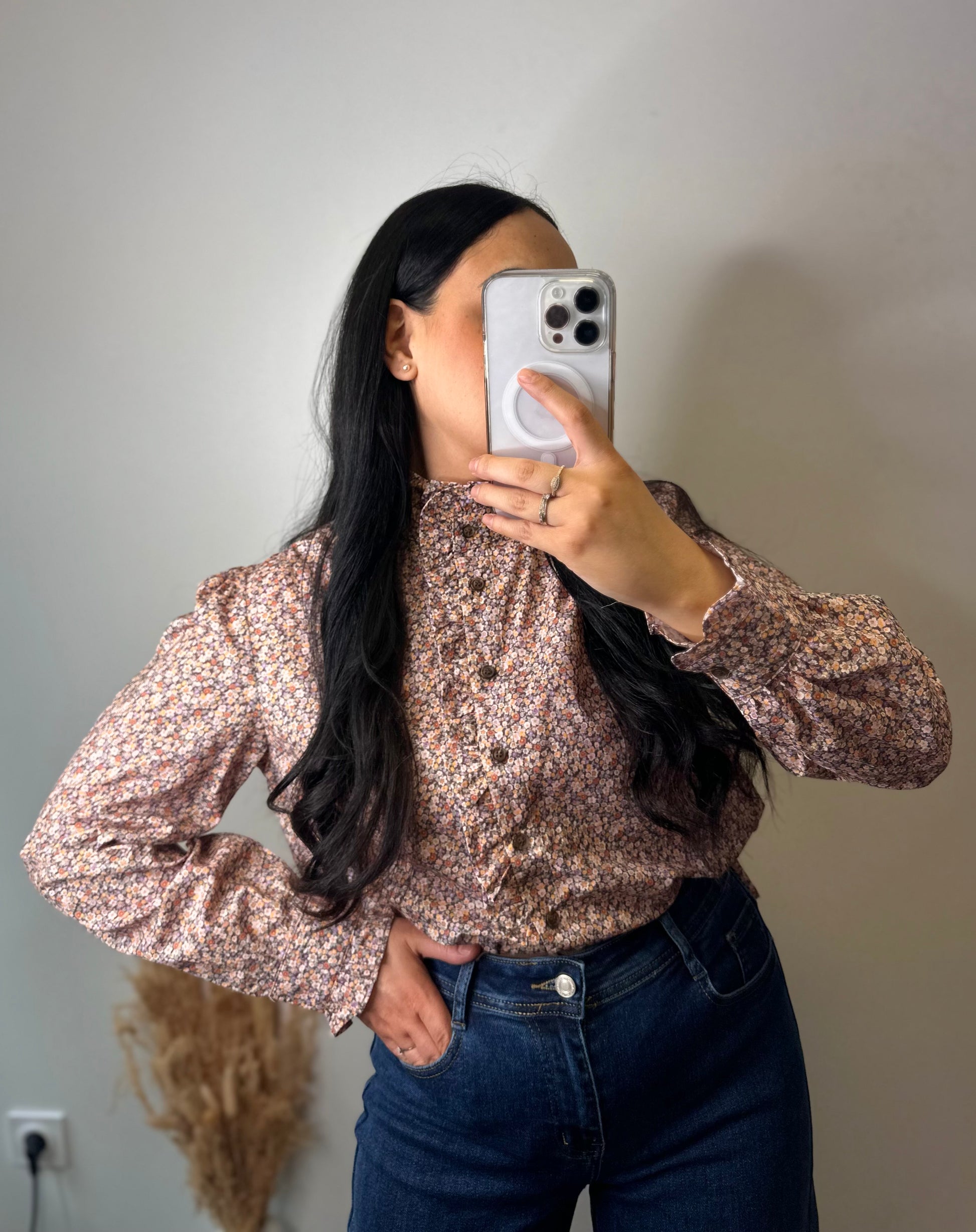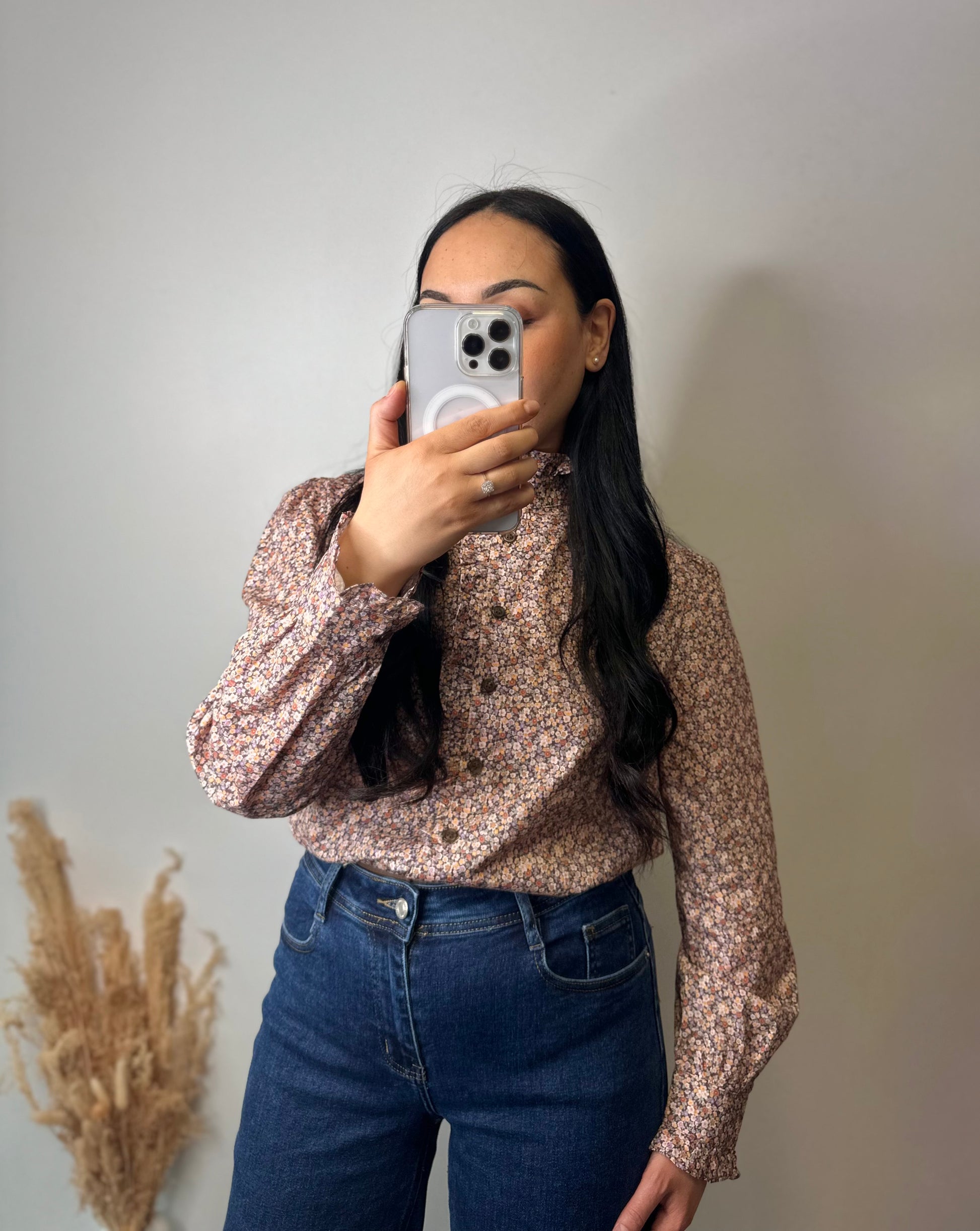 La chemise libertie à col montant ALMA est ornée d'un motif fleuri, offrant une esthétique élégante et raffinée. Conçue pour un confort optimal, elle permet une liberté de mouvement tout en ajoutant une touche de sophistication à votre garde-robe. Idéale pour des occasions variées, cette pièce s'intègre facilement dans diverses tenues.