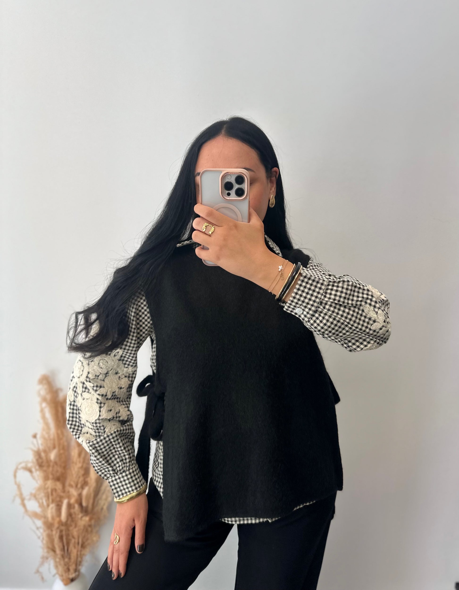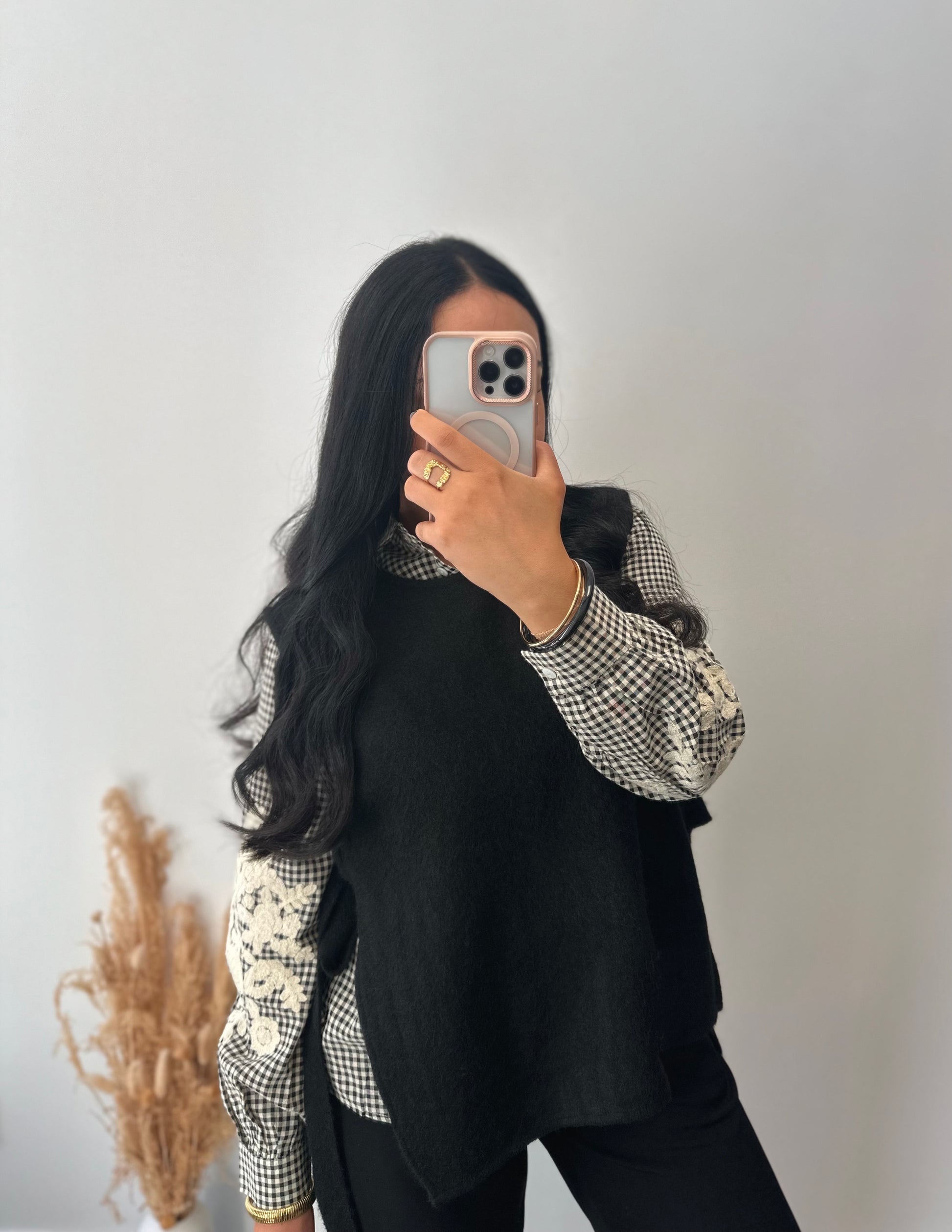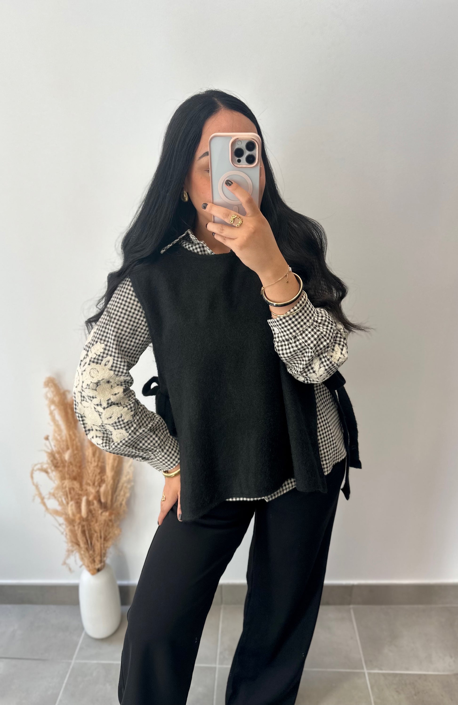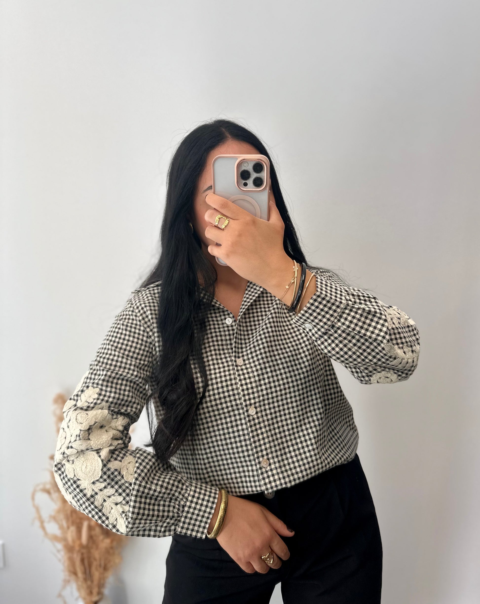 Découvrez notre chemise NOUR avec ses motifs vichy et ses broderies fleuries sur les manches. Élégante et chic, elle apportera une touche de style à votre tenue.