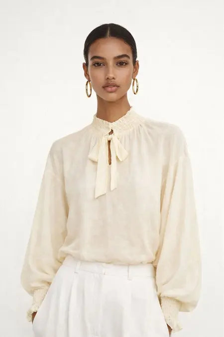Chemisier en tencell voile écru à détails