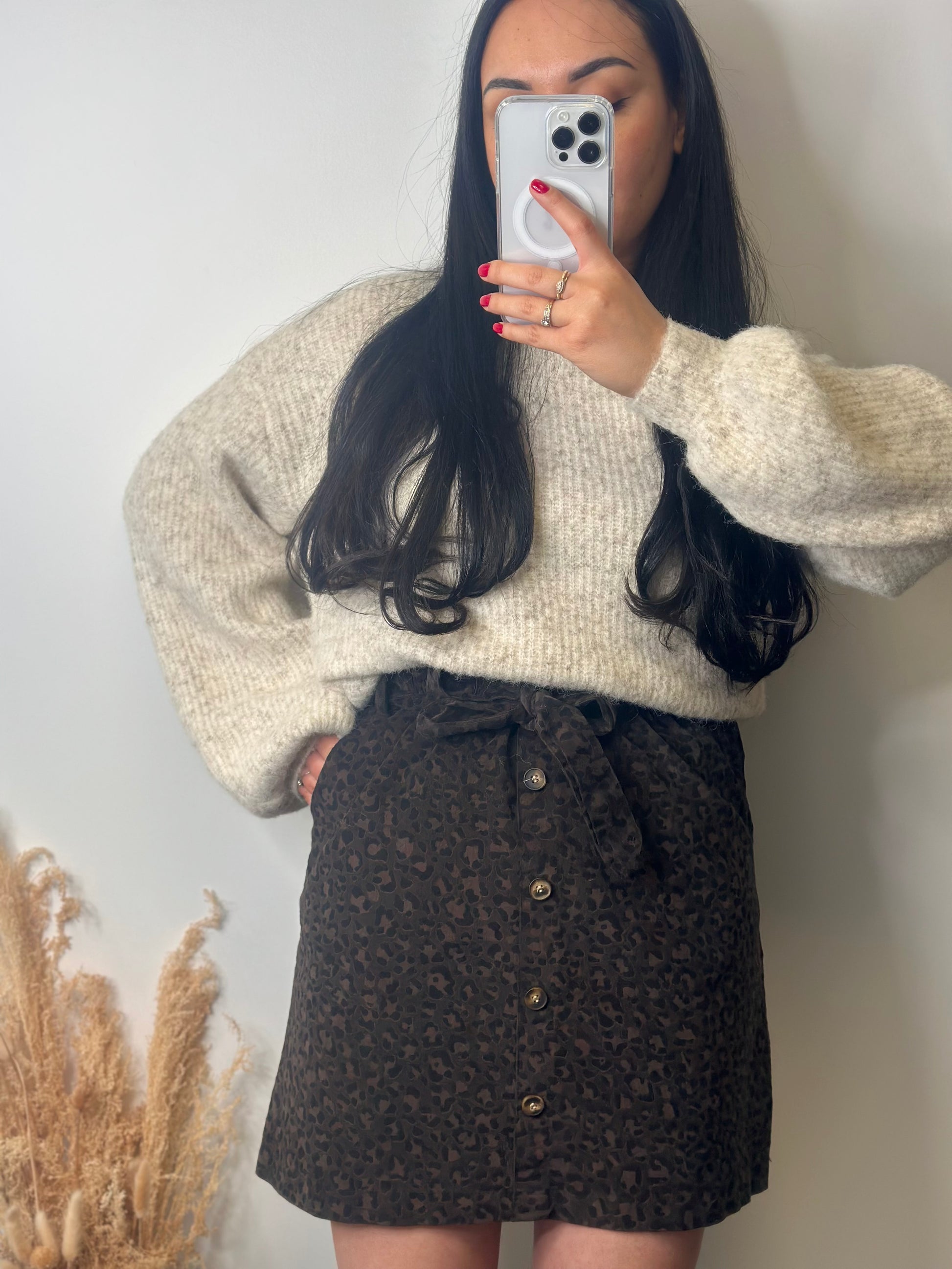 Cette jupe CHIARA présente un motif léopard tendance ainsi qu'un nœud élégant sur le devant. Sa taille unique convient jusqu'à un 38, offrant un confort et un style parfaits pour toute occasion. Ajoutez un côté sauvage à votre garde-robe avec la jupe CHIARA.