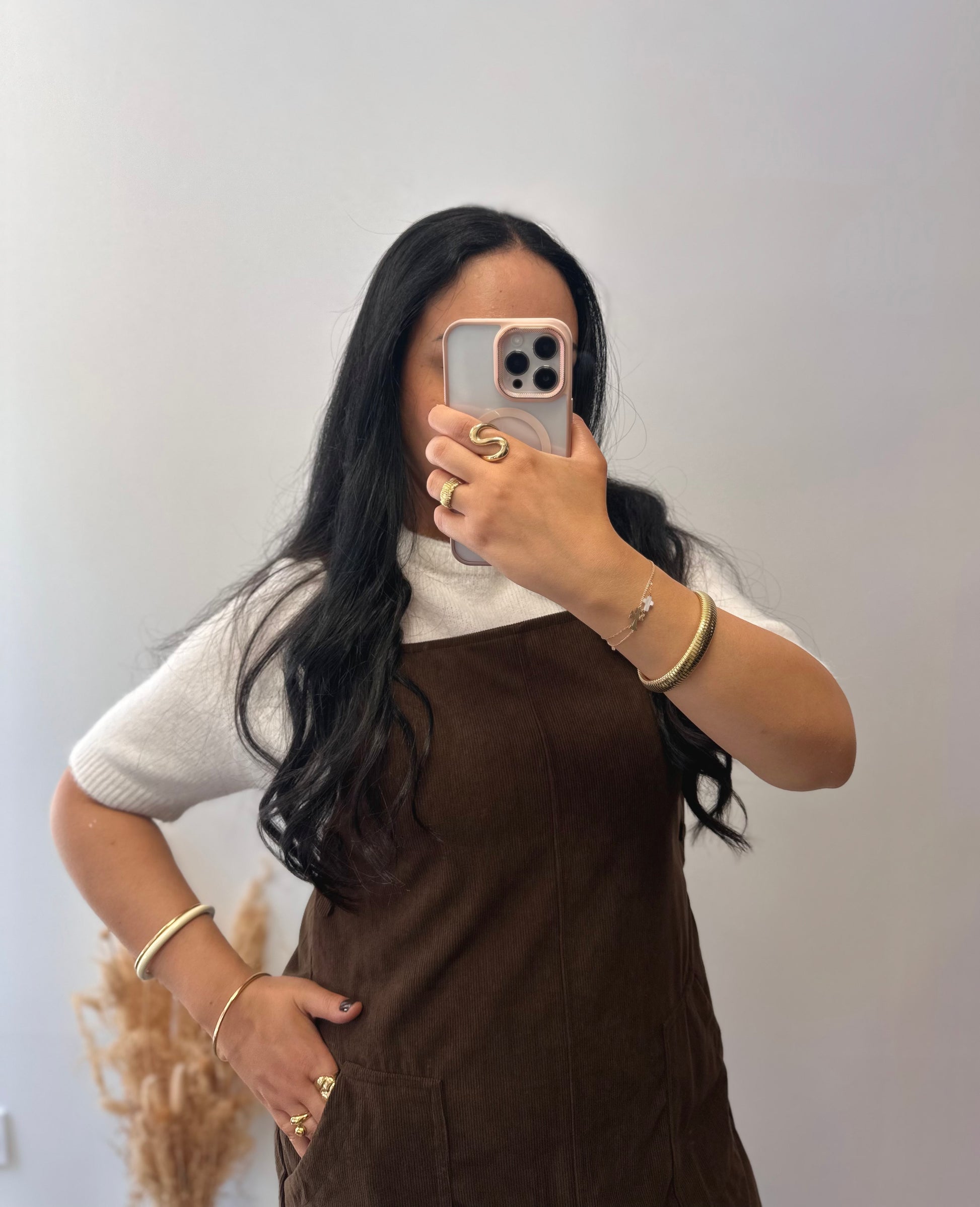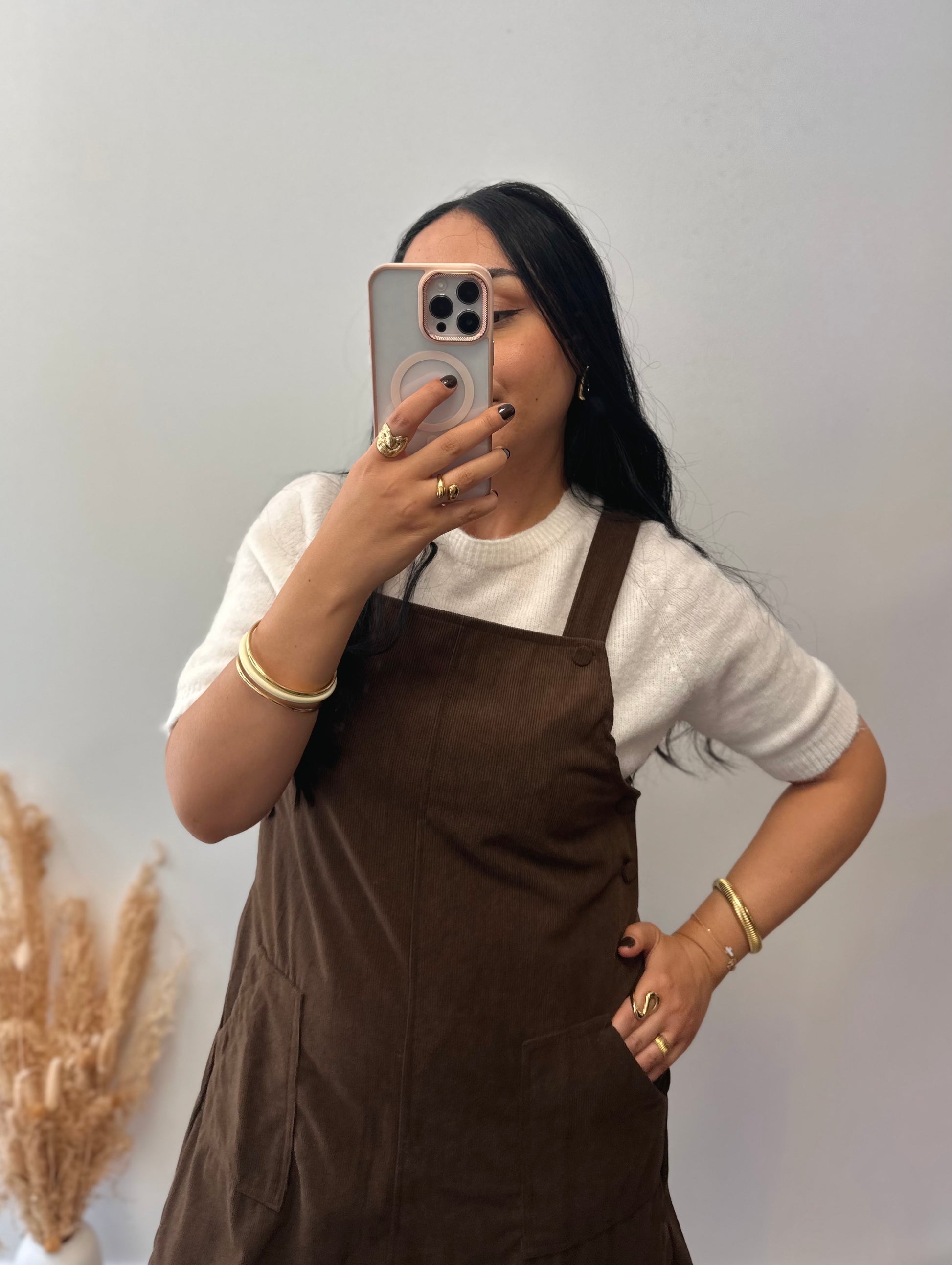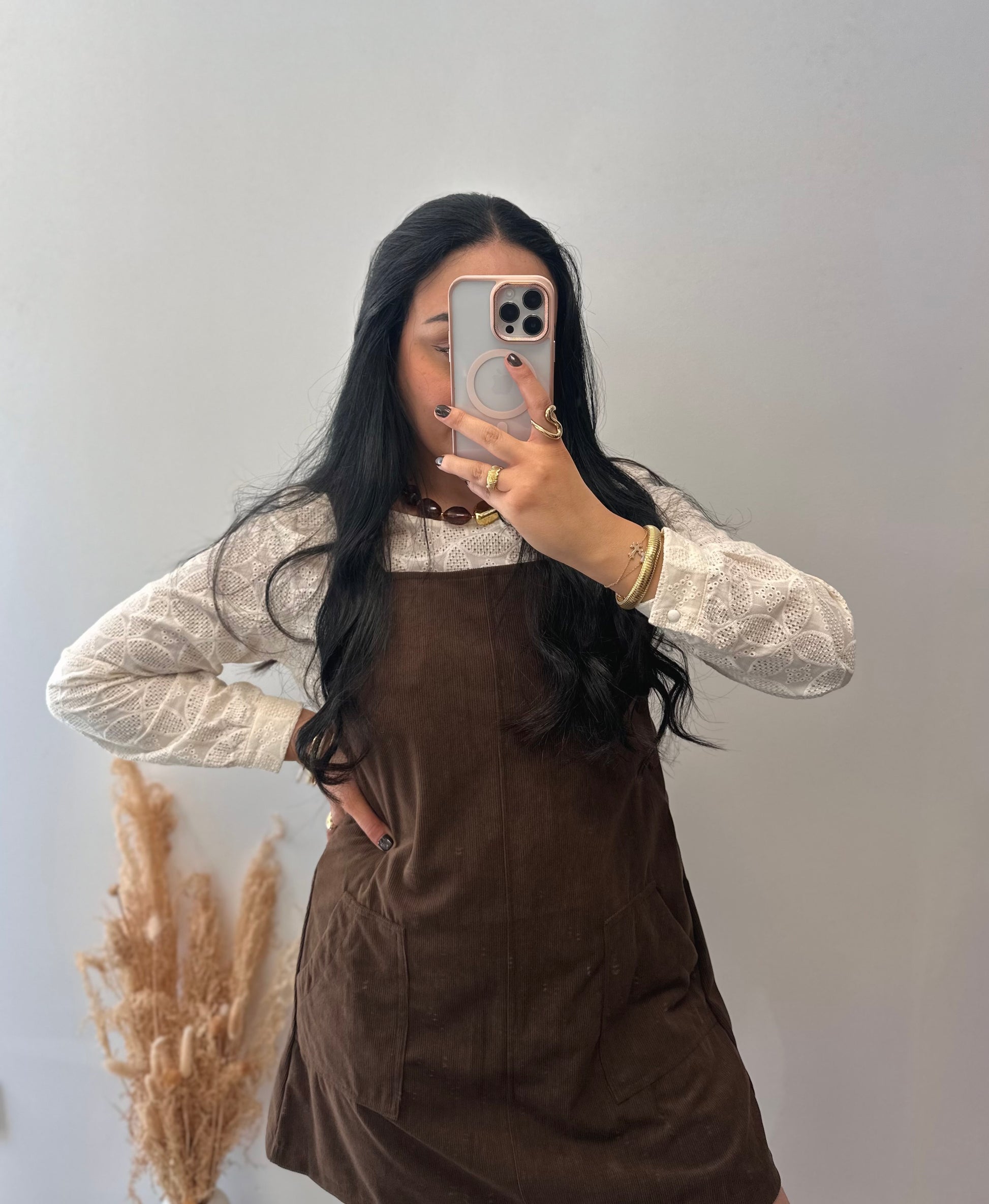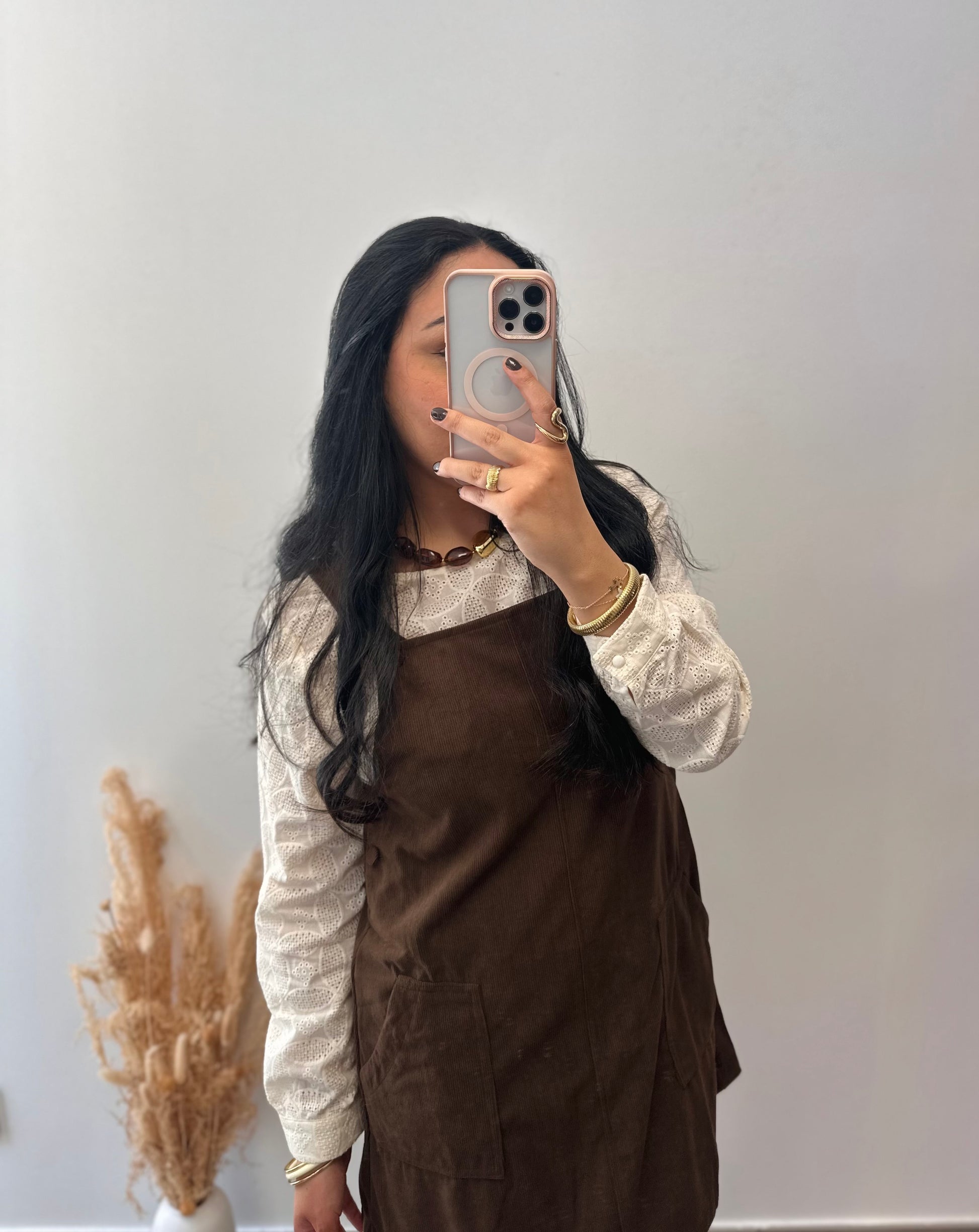 Découvrez le confort absolu avec notre salopette en velours côtelé marron CLARA. Fabriquée avec un tissu de qualité, cette salopette est à la fois élégante et durable.