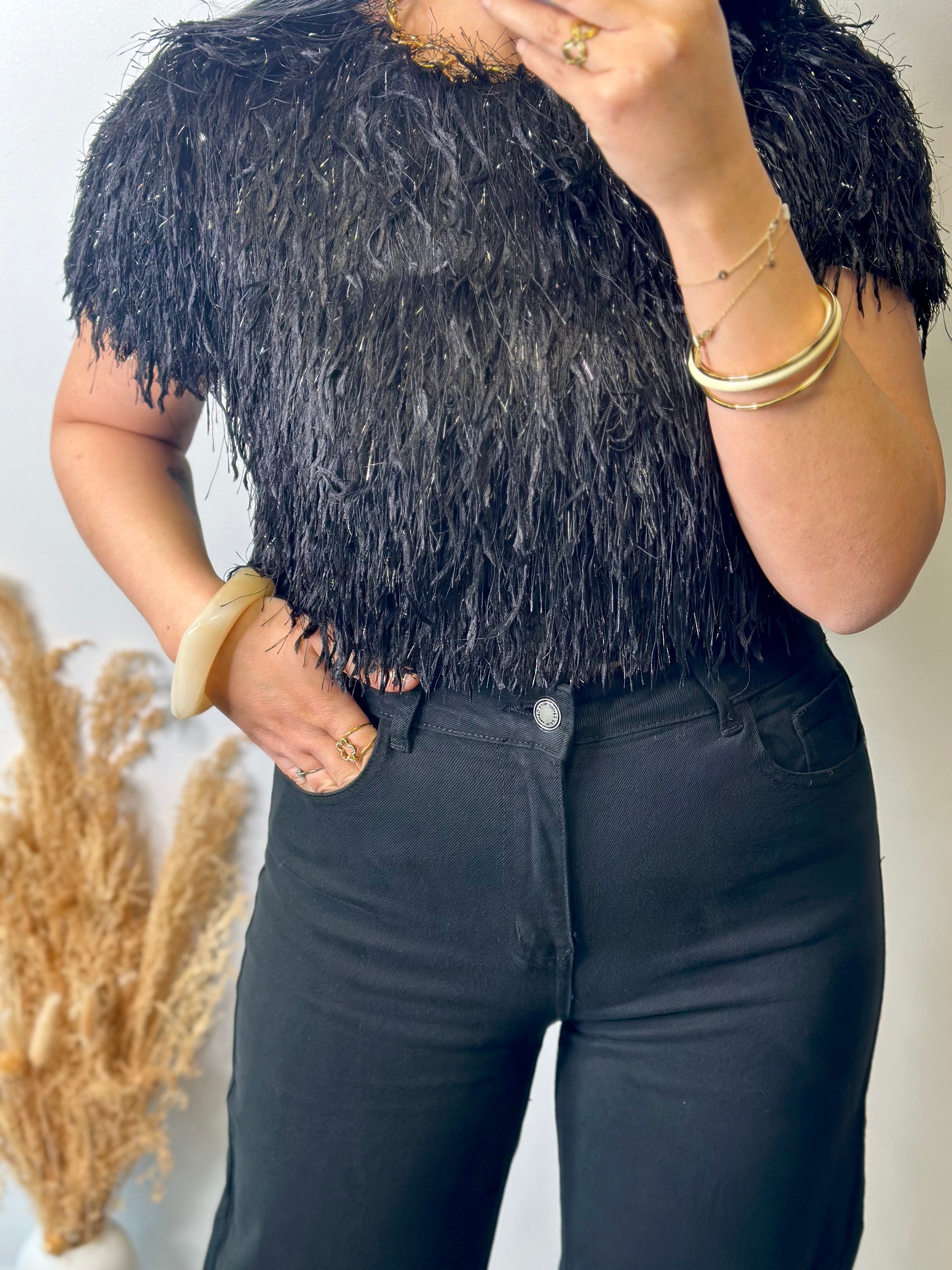 T-shirt en lurex LOU, conçu pour sublimer votre silhouette avec élégance. Sa texture brillante et raffinée apporte une dimension sophistiquée à vos tenues quotidiennes. Le lurex, matière noble et intemporelle, crée des reflets lumineux qui captent la lumière. Coupe épurée et confortable, ce basique revisité se porte aussi bien en solo qu'en superposition. Parfait pour passer du jour à la soirée sans effort.